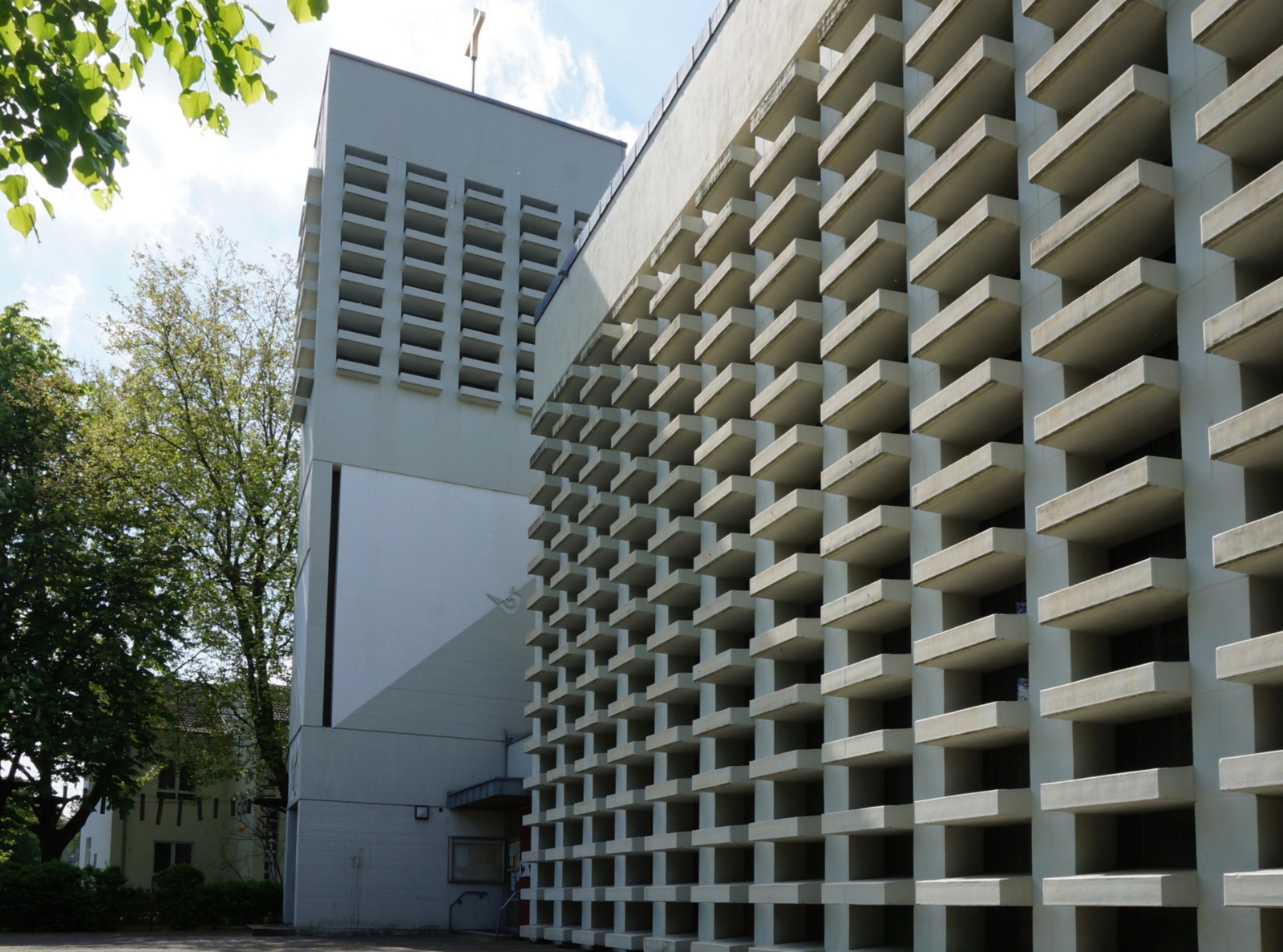 Die kath. Fillialkirche Maria Königin des Friedens ist ein bemerkenswertes Beispiel für die Sakralarchitektur der 1960er Jahre.